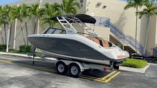 Discover the 2025 Yamaha 222SD at RIVA Motorsports Superstore in Deerfield Beach, FL, The World's Largest Personal Watercraft Dealer. This 22-foot jet boat offers premium luxury and performance with the E-Series Throttle System and DRiVE technology, perfect for cruising and watersports. A galvanized trailer ensures durable towing.