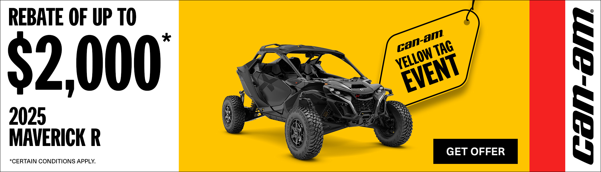 Rebate of up to $2,000 on select 2025 Can-Am Maverick R models